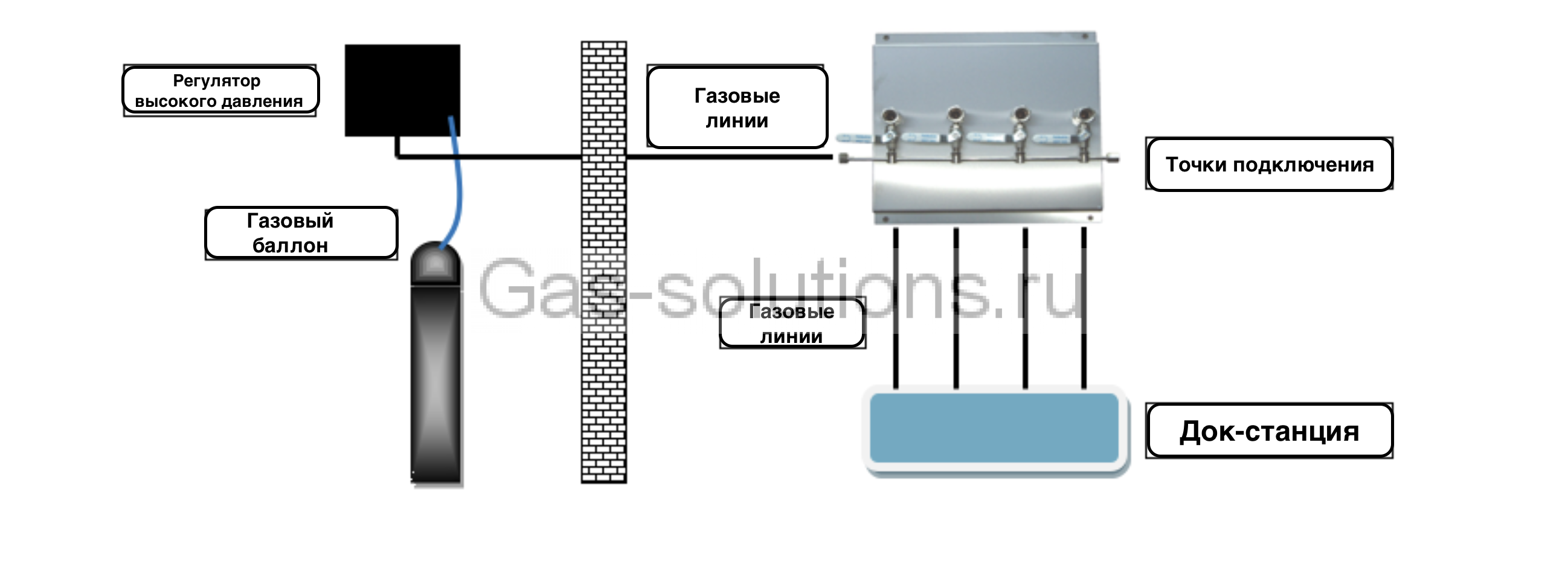 Газораспределительные системы можно использовать как для одной, так и для множества док-станций независимо от того являются ли они отдельными устройствами или группами устройств, подключенными к главным контроллерам.