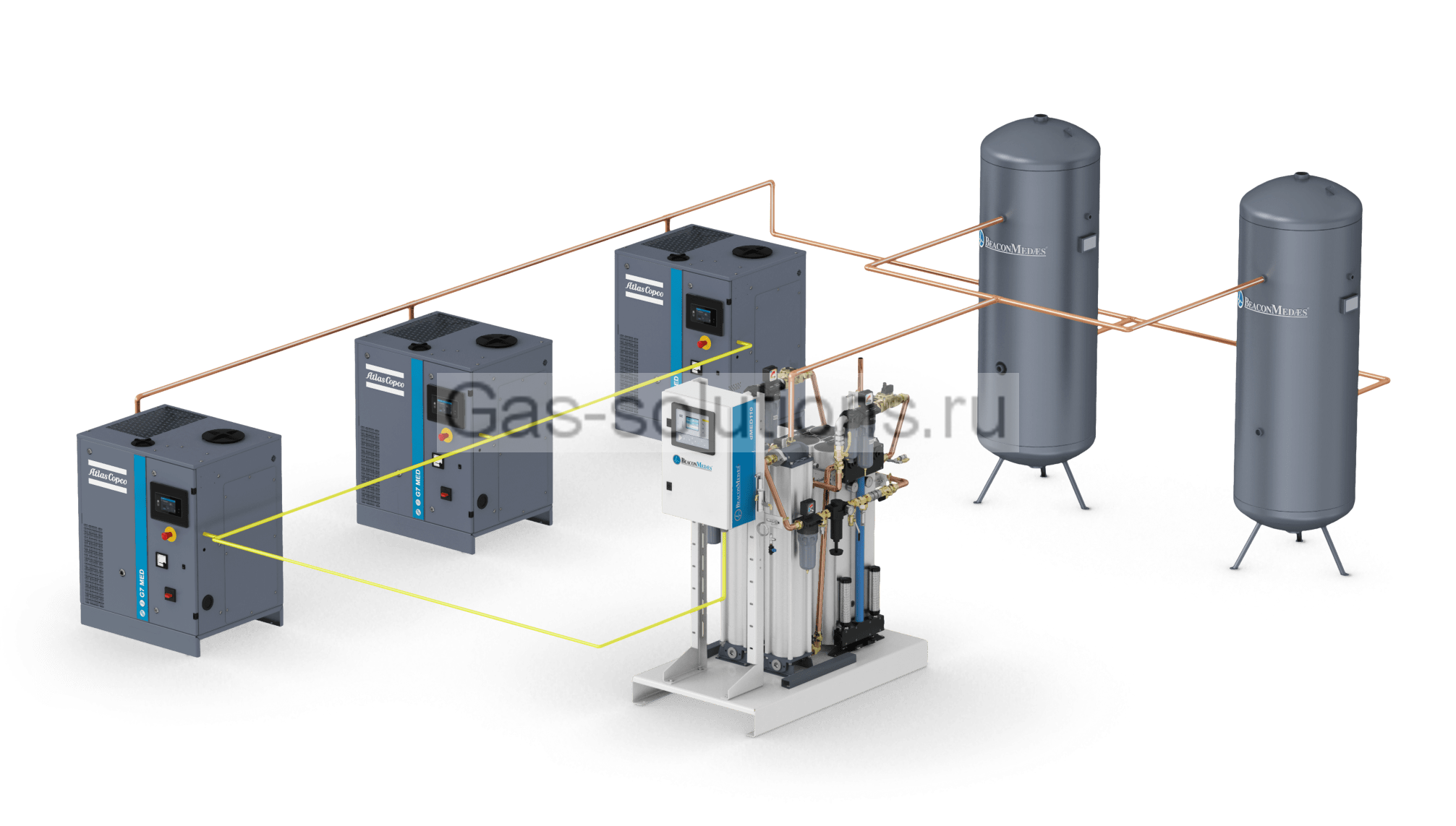 - центрального контроллера с графическим дисплеем для автоматического управления работой компрессоров и адсорбционных осушителей;