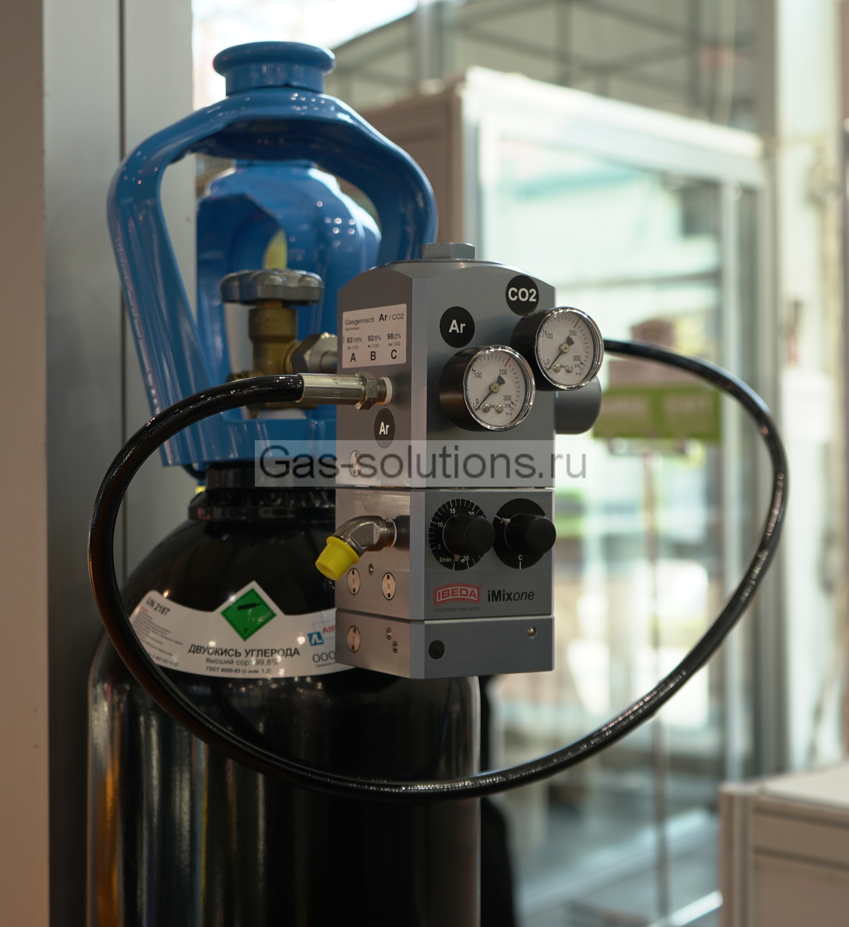 В наличии на складе смеситель газов от немецкого производителя IBEDA серии IMixOne c фиксированными заводскими настройками 2/10/20 % Углекислоты (CO2) в аргоне (Ar); производительность до 30 л/мин.