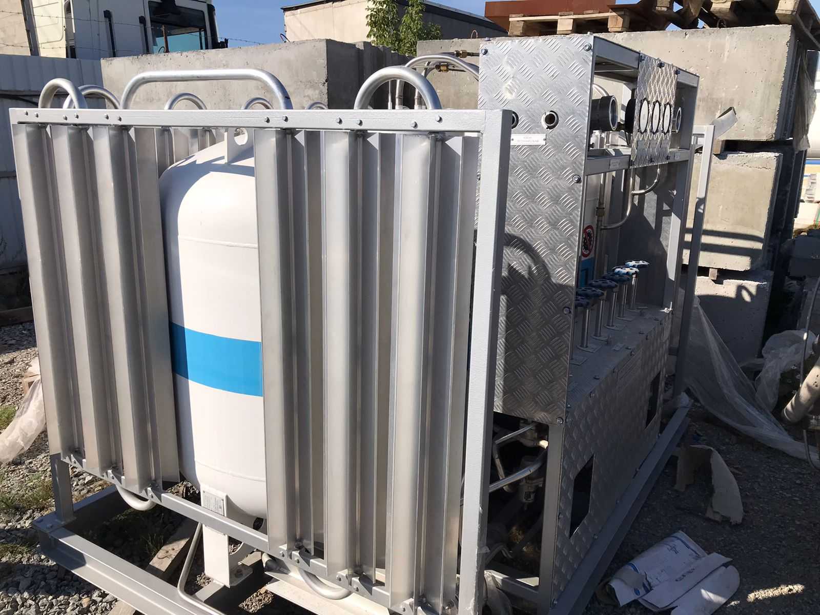 Вертикальный резервуар газификатора размещен в металлическом каркасе с подъемными проушинами.