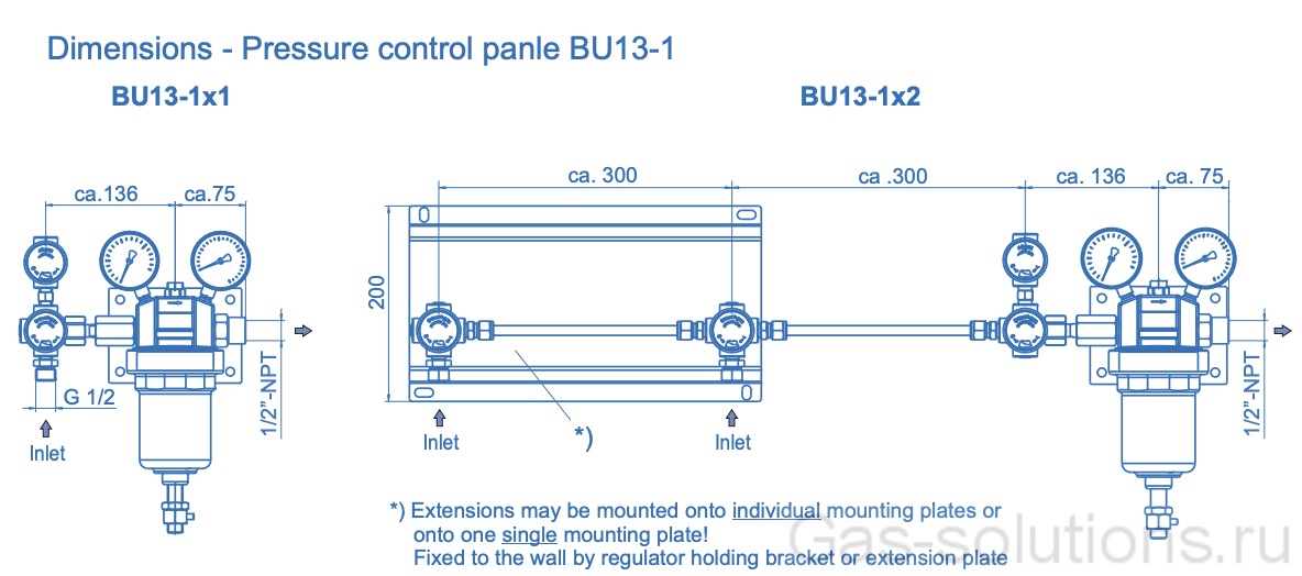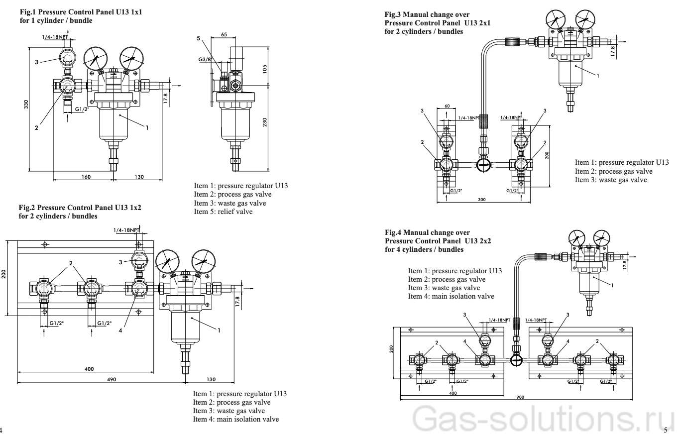 Ручная одноступенчатая одноплечевая/двуплечевая (устанавливается доп. блок) газовая рампа для инертных газов и газовых смесей до качества 4,8 в баллонах/моноблоках (одобрено для кислорода).