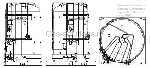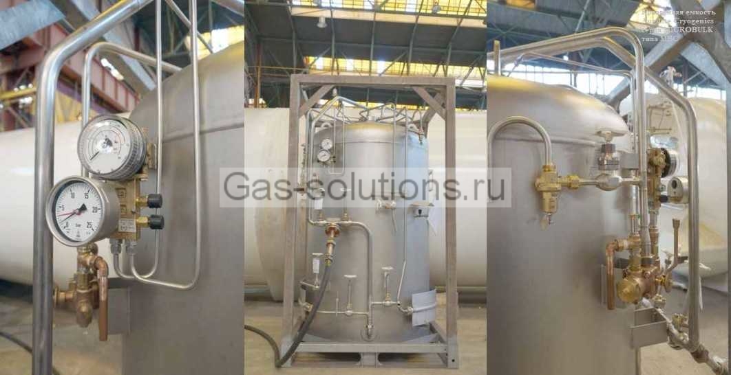 Криогенная емкость Auguste Cryogenics серии MICROBULK типа MBC объемом от 1 м3 до 3 м3 альтернатива баллонам высокого давления для бесперебойной подачи сжиженных технических газов: азот (N2), кислород (O2), аргон (Ar), сжиженный природный газ (СПГ), углекислый газ или углекислота (CО2), закись азота (N2O), этилен (C2H4).