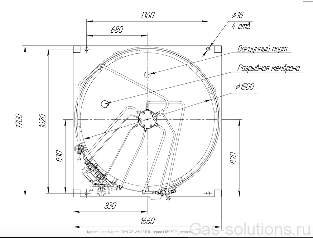 Ёмкость с обвязкой комплектующими состоит из: