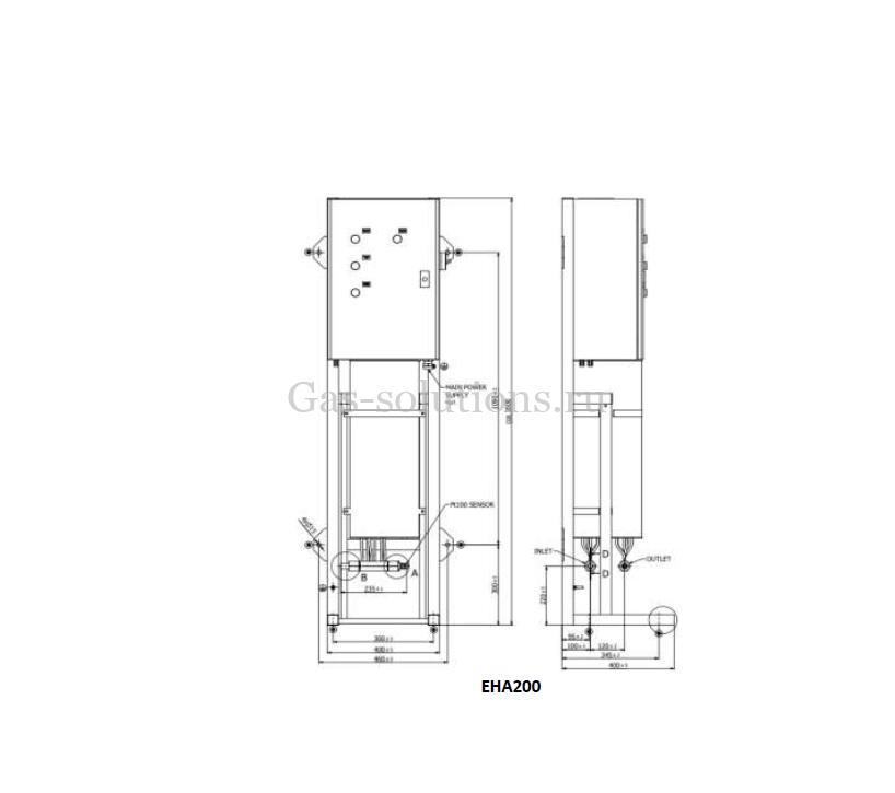 - EHA80 предназначены для подогрева газа без особых требований к точности температуры на выходе, EHA80 не подходит для испарения газа и для подогрева газа с повышенными требованиями к точности температуры на выходе – основным ограничением является малая поверхность теплообмена трубной решетки.