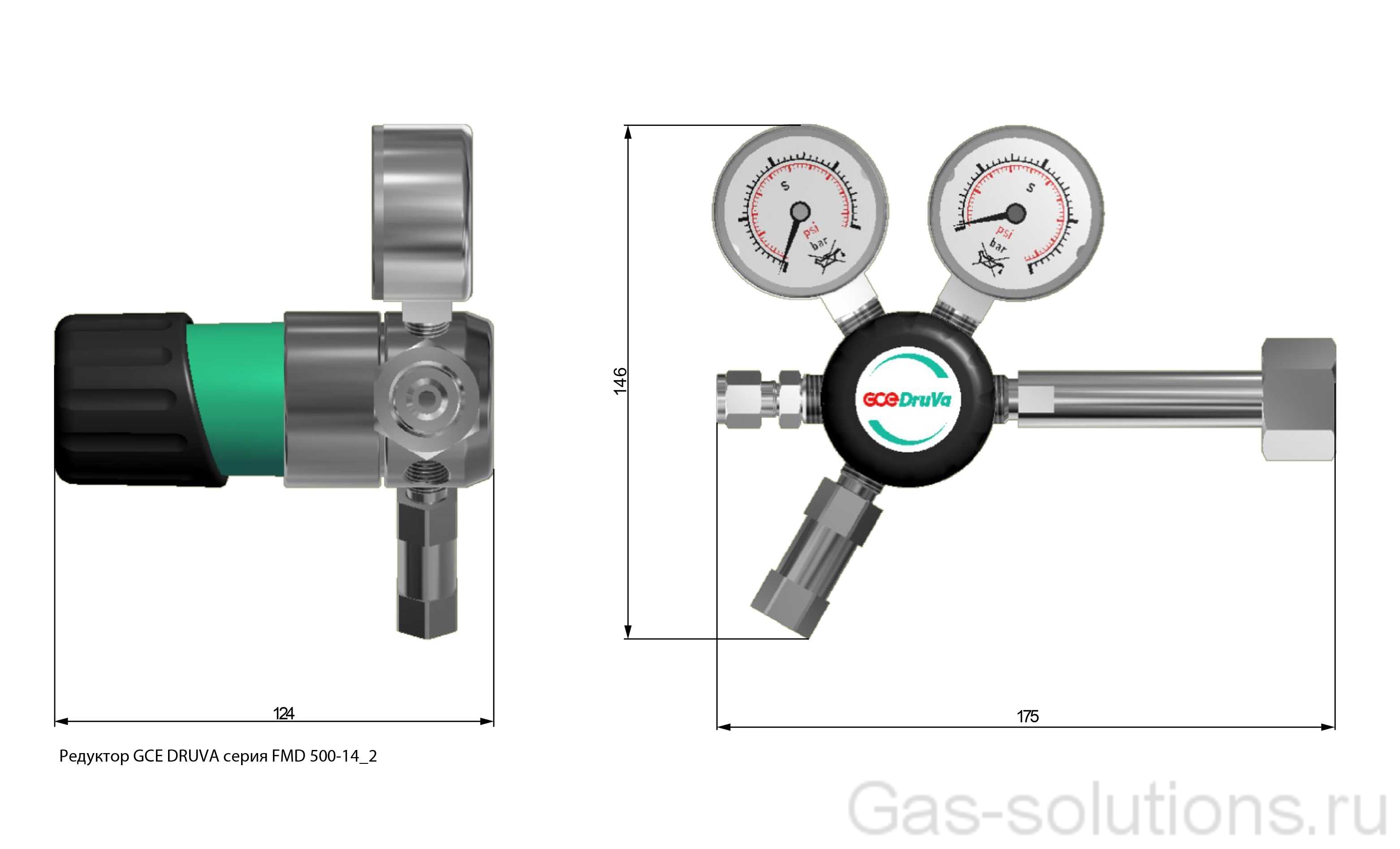Одноступенчатый редуктор для инертных, горючих, окисляющих газов и газовых смесей до качества 6.0 (базовая модель) *