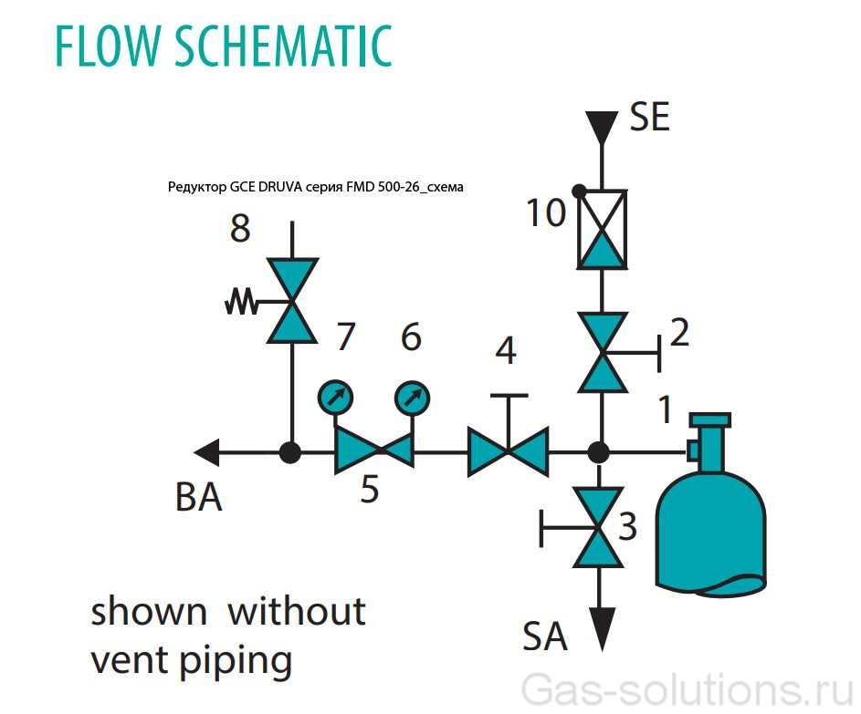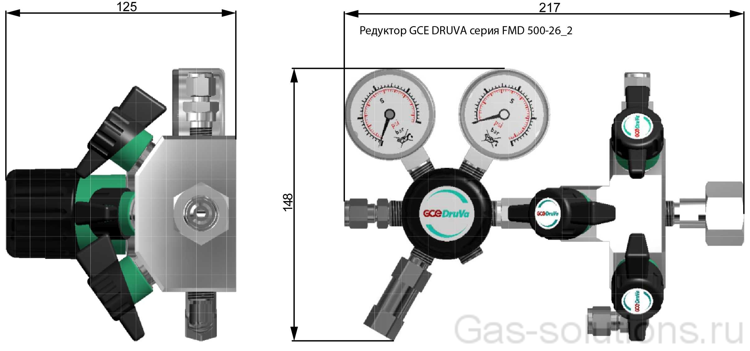 Одноступенчатый редуктор для коррозионных, горючих, окисляющих газов (кроме кислорода) и газовых смесей до качества 6.0 (с продувочным блоком)*