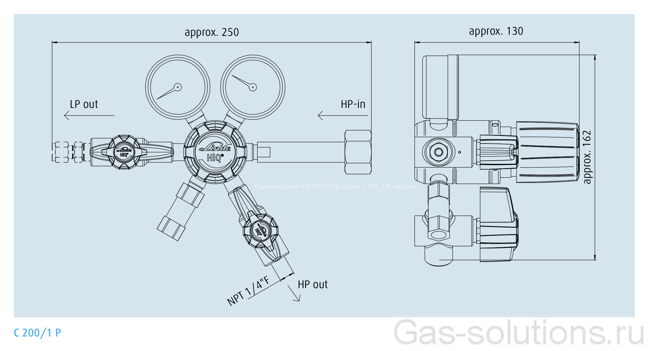 **указаны размеры модели С 200/1 Р c учетом продувочного клапана