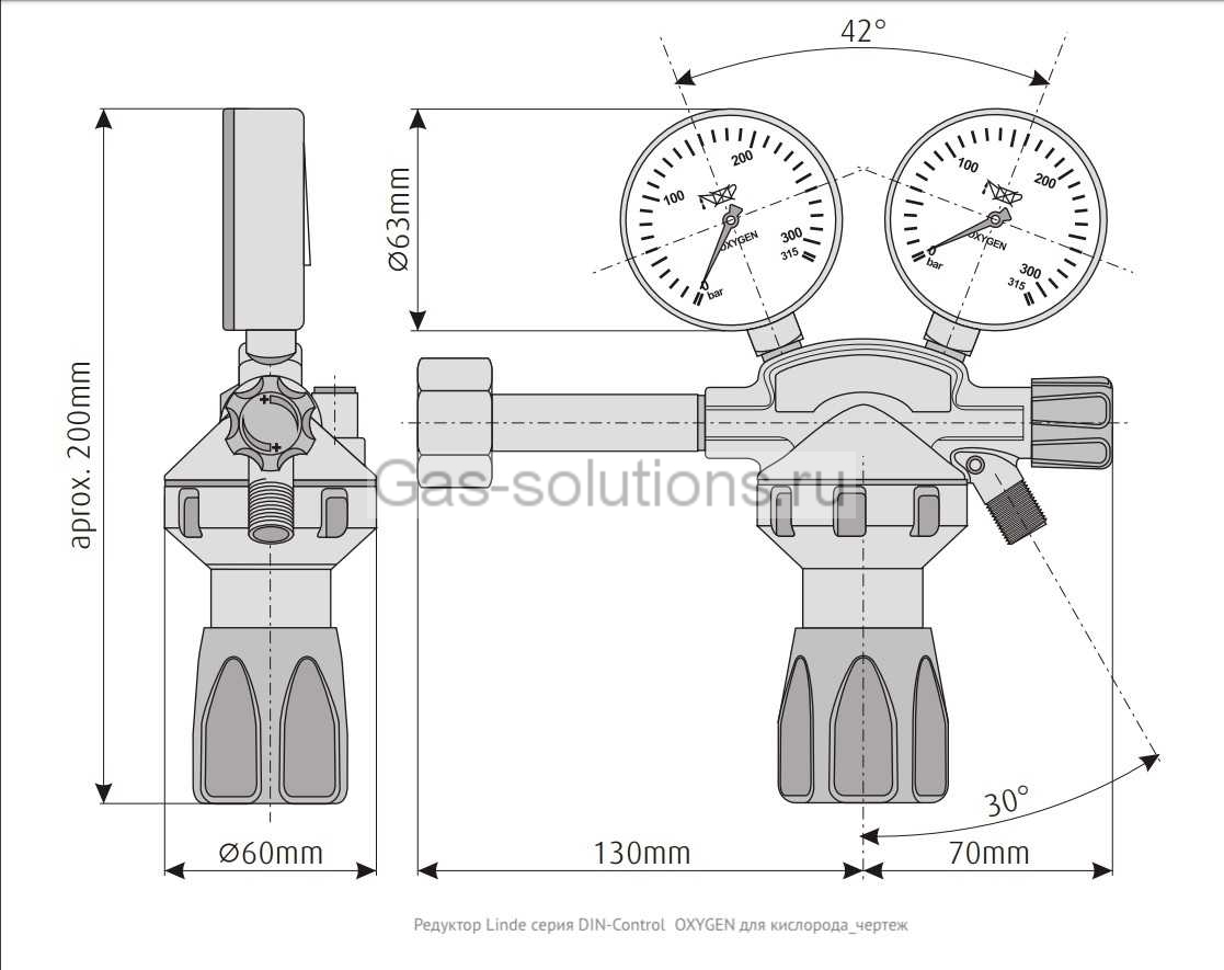 *варианты наименований: редуктор O2, 200-10бар, G3/4″ G 1/4», 30м3/ч.; редуктор DINEX кислород; редуктор O2 малолитр, 200-10бар, W21,8×1/14″ G 1/4″, 30м3/ч.