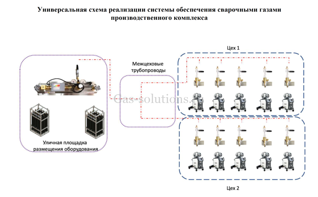 Данная система обеспечит непрерывную подачу газовой смеси в новый и действующий цеха с учетом возможного строительства дополнительных цехов в будущем и увеличения количества сварочных постов.